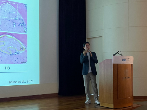 ○ 치편협 정기세미나(제1세미나실)에서는 치의학회 회원 학회 편집인들이 대거 참석해 높은 관심을 보였다. 이번 세미나는 편집인이라면 누구나 공감할 만한 유용한 주제들로 구성되어 큰 호응을 얻었다. 강연은 ▲ "의학학술지편집인협의회가 나아갈 길"(한동수 회장, 대한의학학술지편집인협의회), ▲ "연구자를 위한 그래프 그리기"(김지형 교수, 서울성심병원), ▲ "Chat GPT를 활용한 논문쓰기"(권정민 교수, 서울교육대학교) 등 총 3개의 주제로 진행되었다.