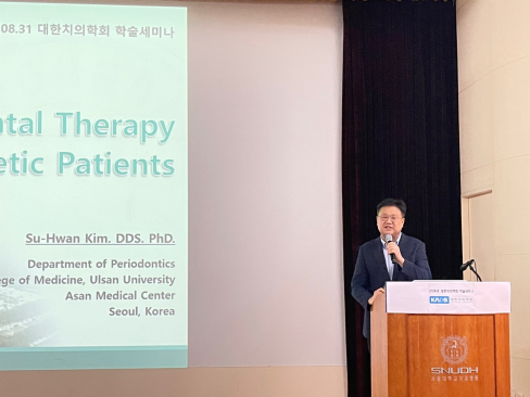 ► 학술세미나 ○ 이번 학술세미나(대강당)는 많은 치과의사들이 참석한 가운데, 권용대 교수(경희대학교 치과대학)는 "항흡수치료 환자의 최신경향과 치과 치료 전략"에 대해, 김수환 교수(서울아산병원)는 "당뇨병 환자의 임플란트 및 치주치료"를 주제로 강연했다. 두 강연은 특히 골다공증과 당뇨병 환자의 임플란트 치료 시 주의할 점과 치과의사의 역할에 대해 다루며 높은 집중도를 이끌어냈다.