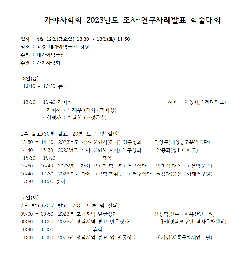 가야사학회 2023년도 조사연구사례발표 학술대회