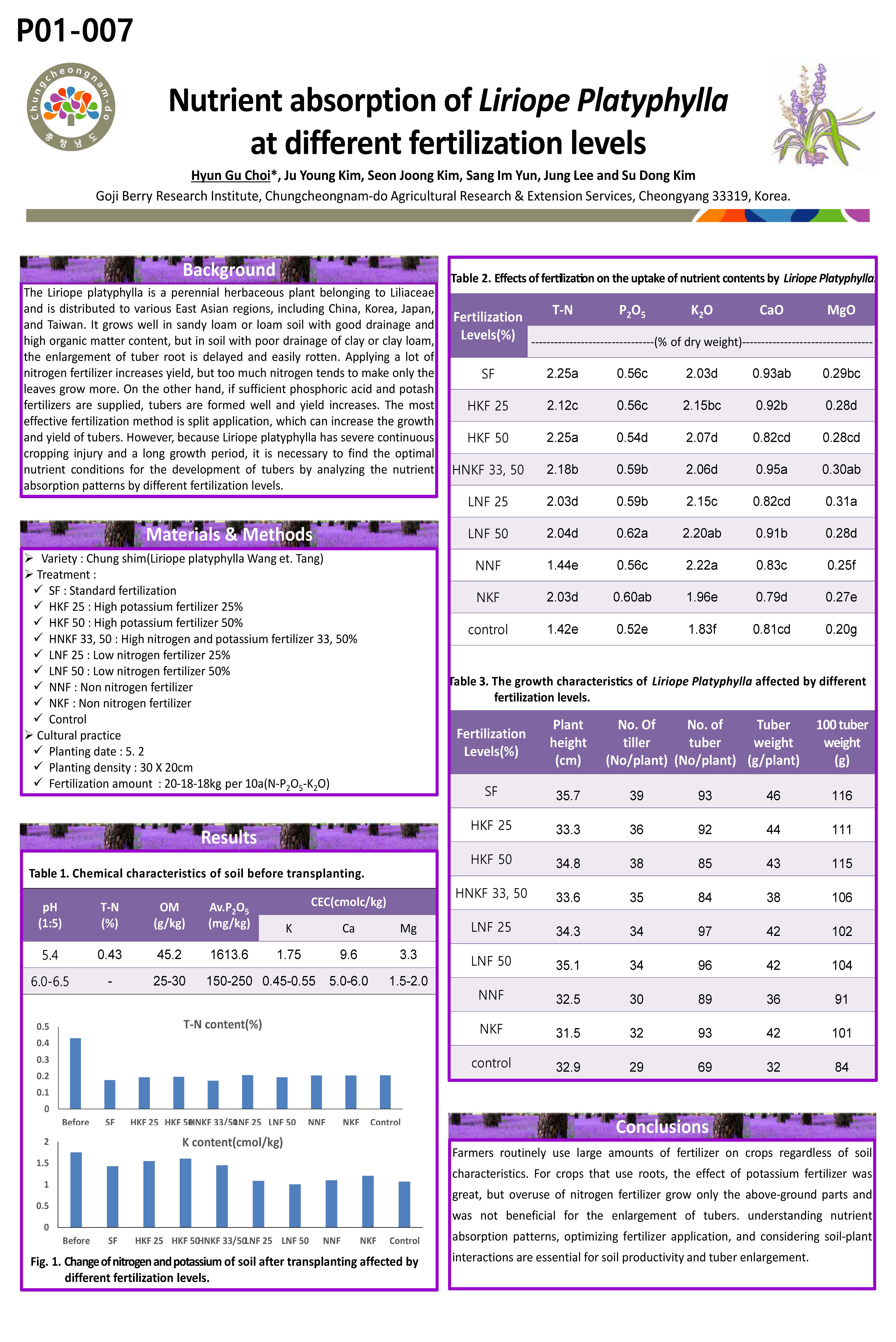 [P01-007] 비료 수준별 맥문동 무기양분 흡수양상
