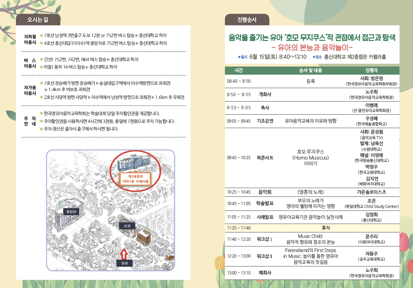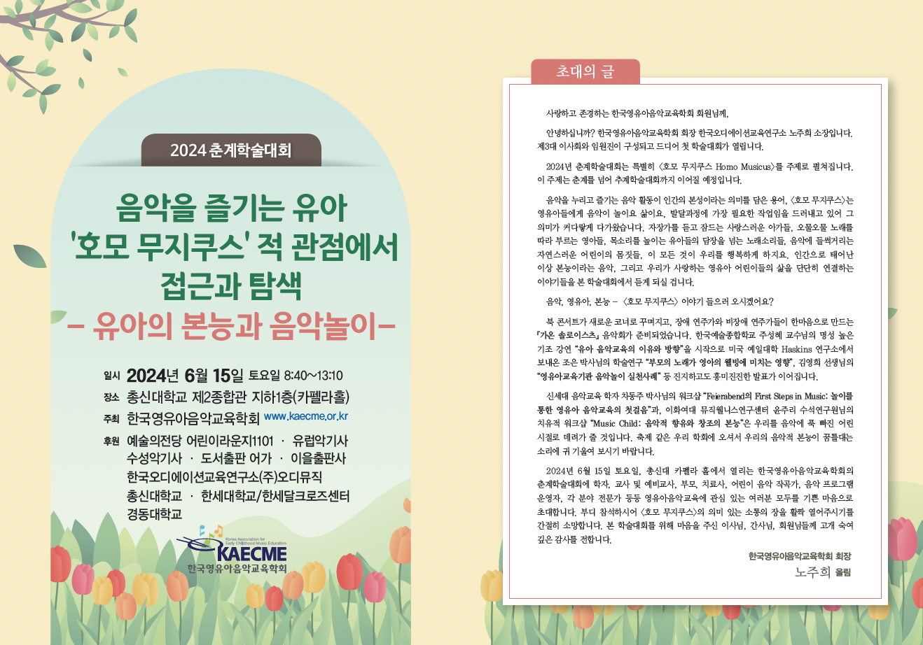 오는 6월 15일 한국영유아음악교육학회 춘계학술대회가 총신대학교에서 열립니다.