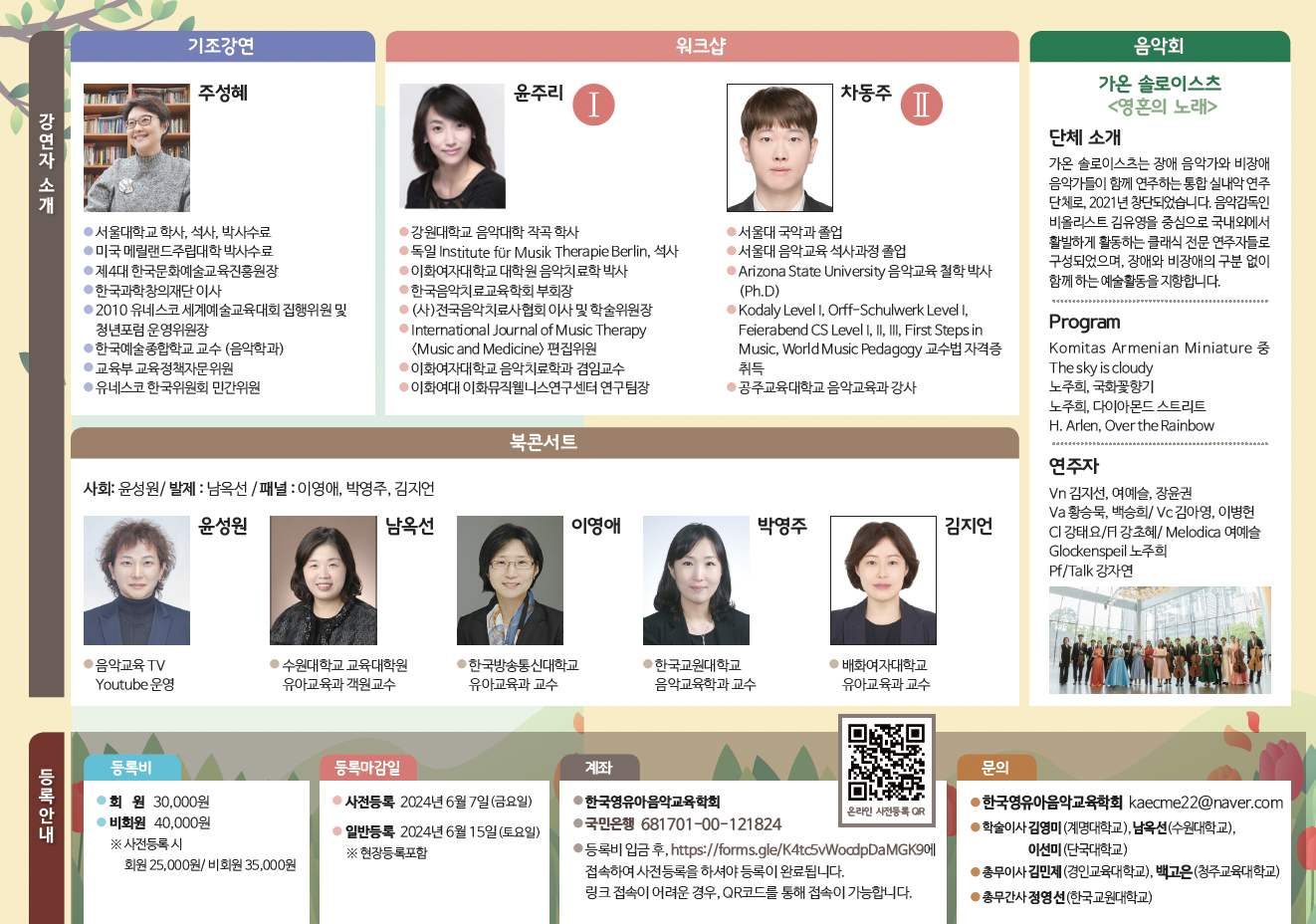 이화여대 음악치료 윤주리 교수님과 광주교육대학교 차동주 박사님의 워크샵이 각각 준비되어 있습니다.