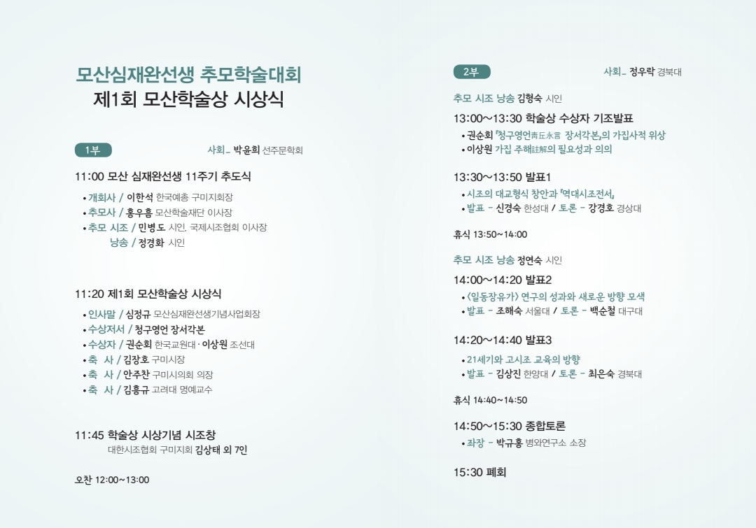 모산 심재완선생 11주기 추모학술대회와 제1회 모산학술상 시상식을 알려드립니다