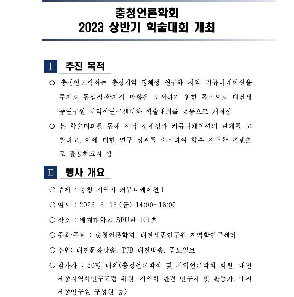 충청언론학회 2023년 봄철 학술대회 개최 안내
