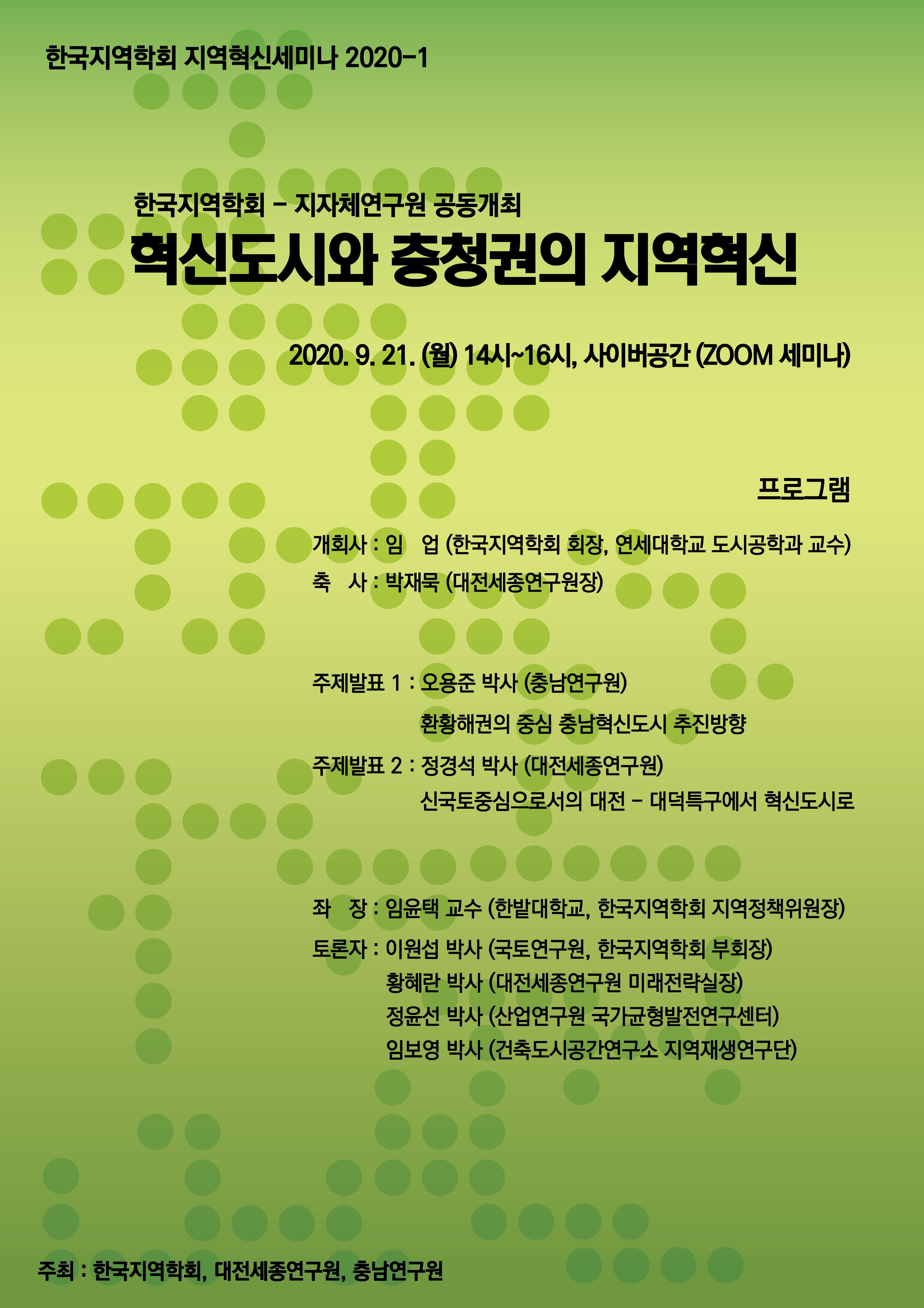 ○ 주관 : 한국지역학회, 대전세종연구원, 충남연구원