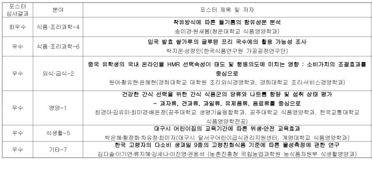 2021년 동아시아식생활학회 추계학술대회 포스터발표 결과
