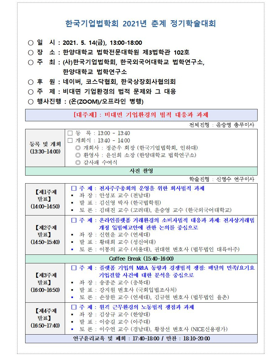 한국기업법학회 춘계학술대회에 관하여 안내 메일을 드립니다.