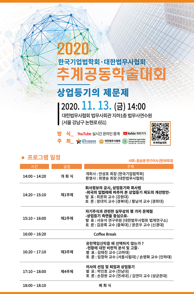 2020년 한국기업법학회·대한법무사협회 추계공동학술대회 안내