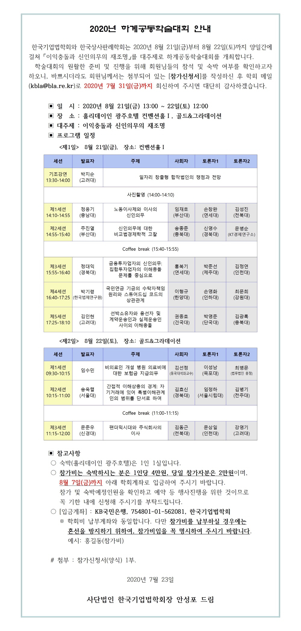 2020년 하계공동학술대회 참가신청 안내