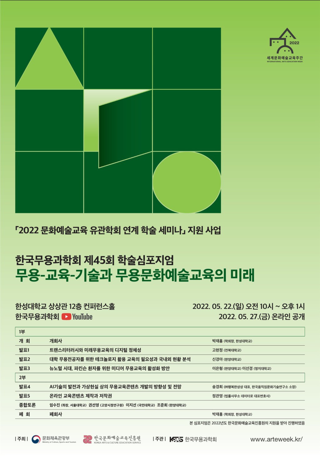 한국문화예술교육진흥원이 주최하고 한국무용과학회가 주관하는