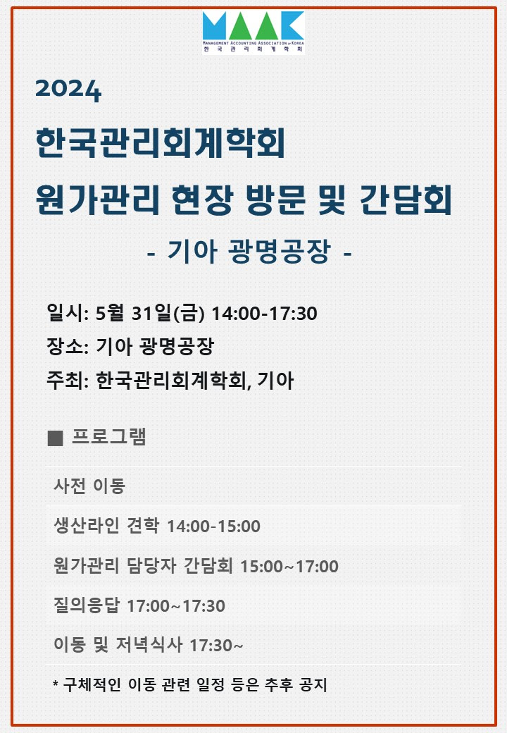 2024 한국관리회계학회 원가관리 현장 방문 및 간담회 (5/31 금, 기아 광명공장)