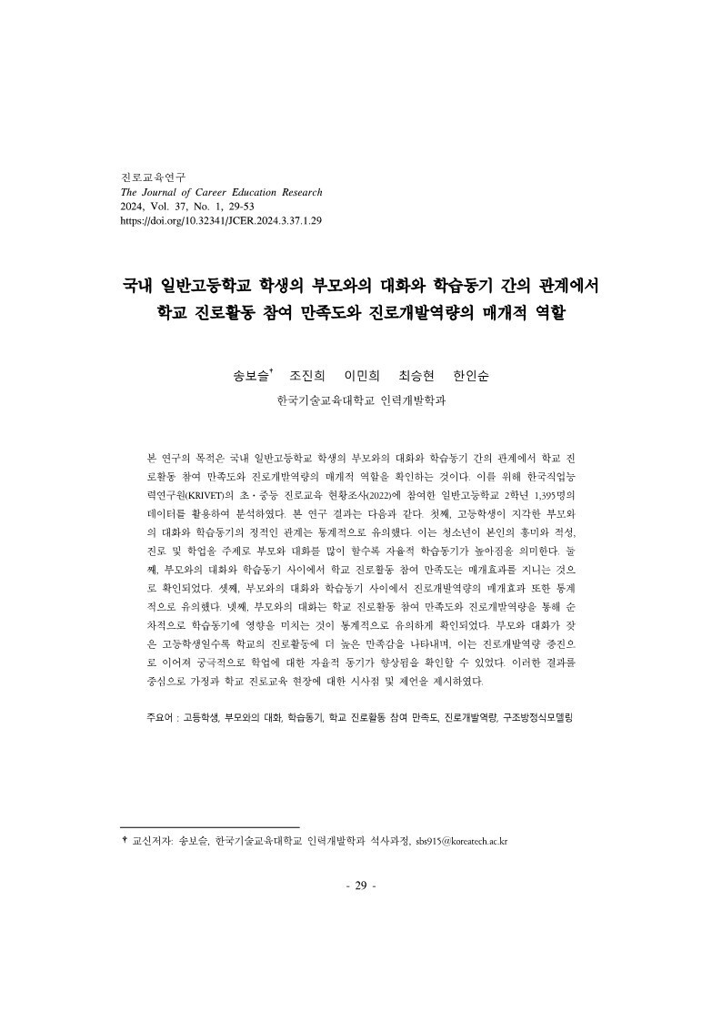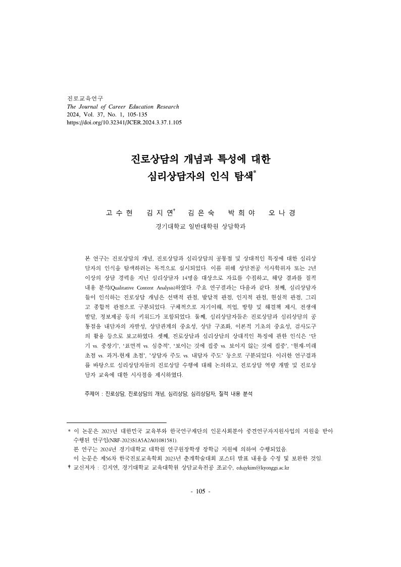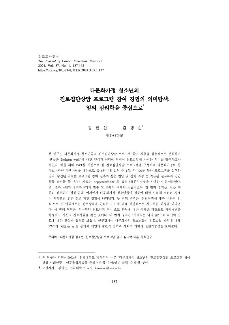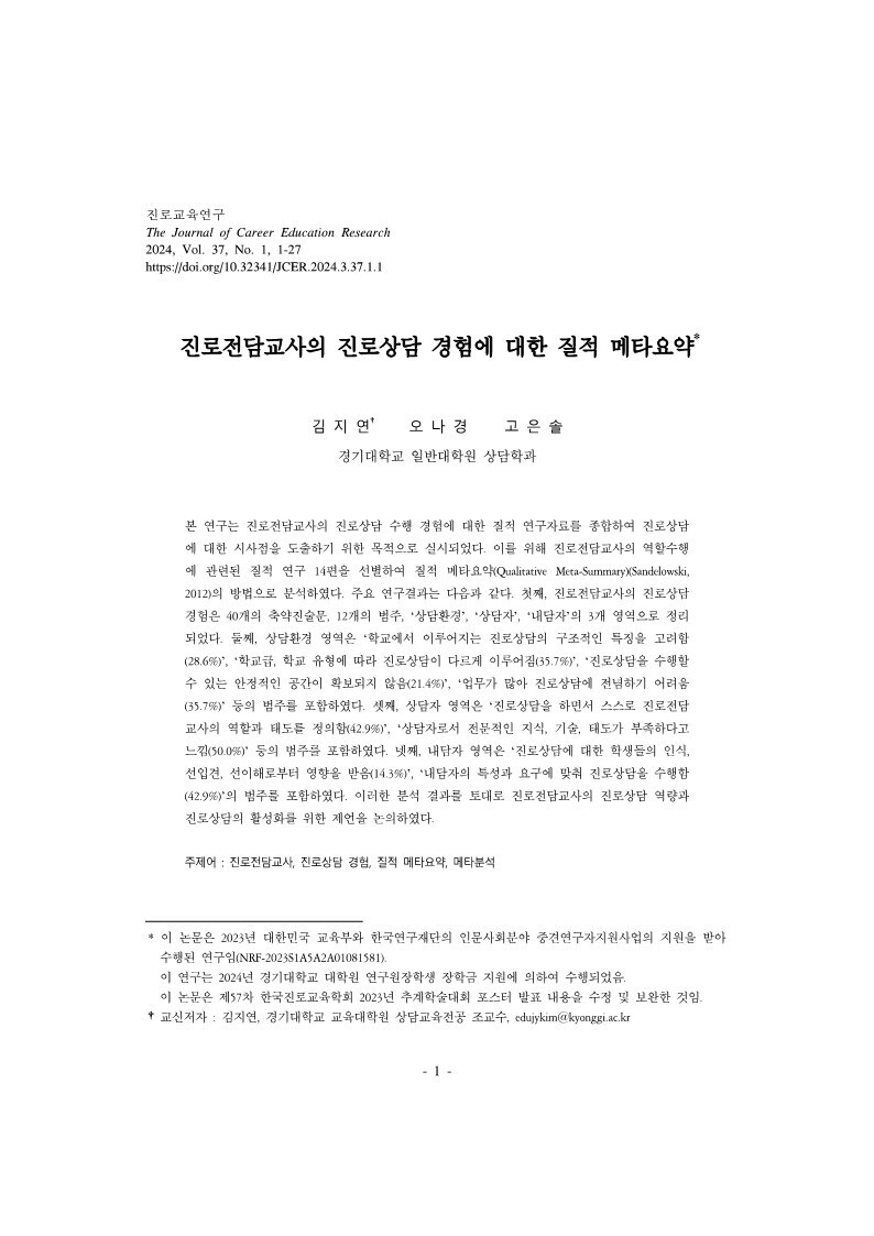 [뉴스레터 vol. 001] 학술지 연구성과 요약: 진로교육연구 제37권 제1호