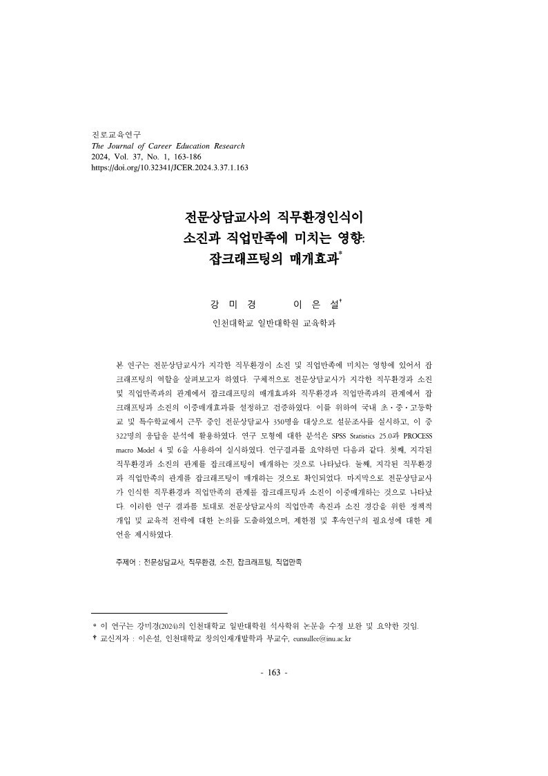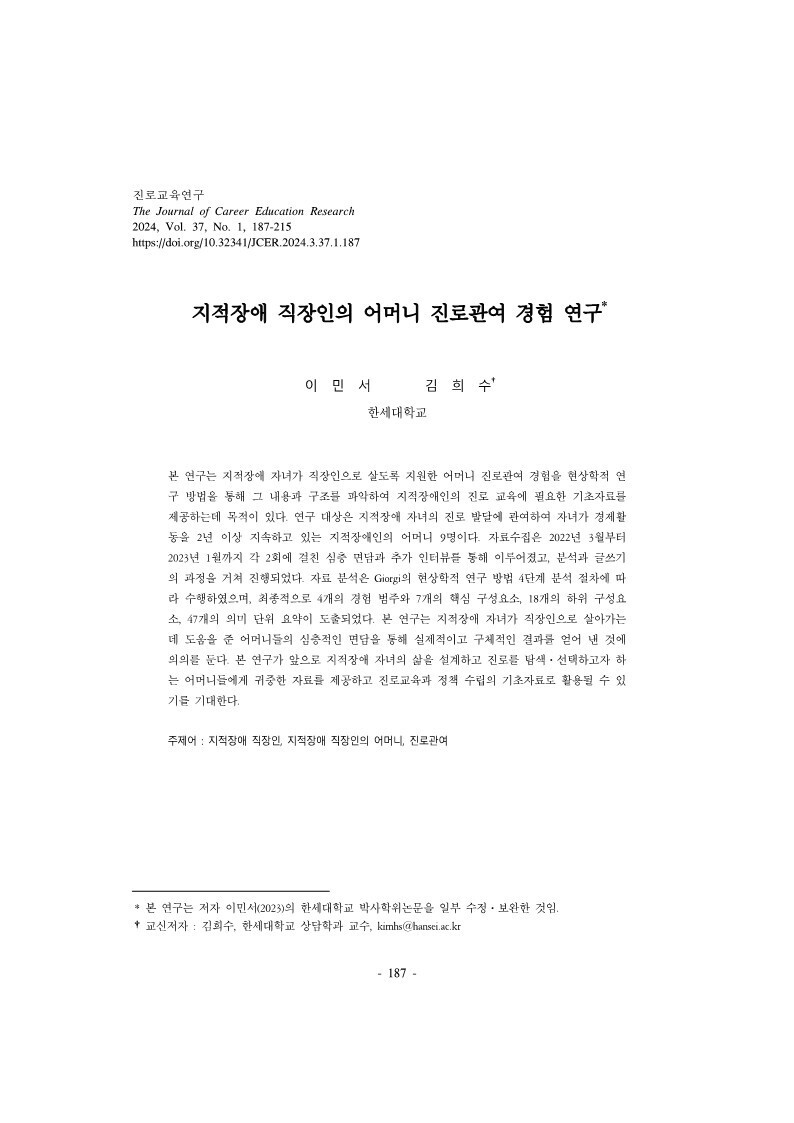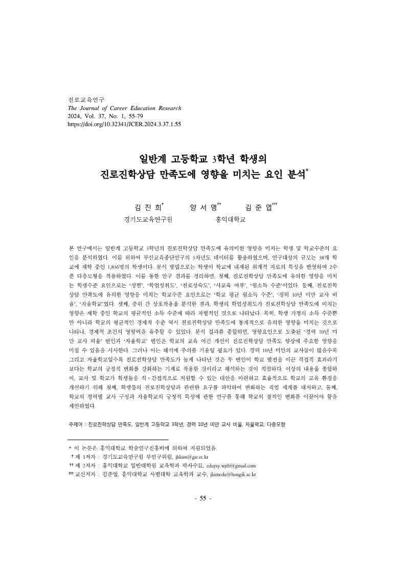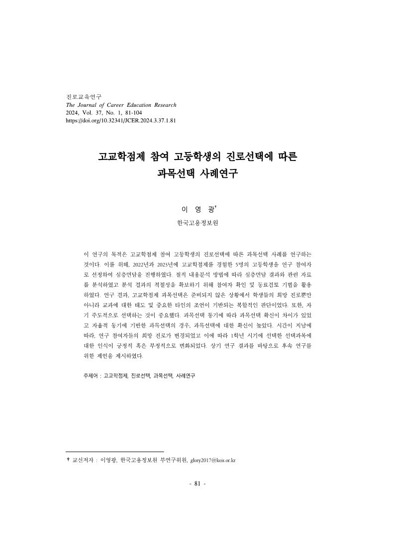 [뉴스레터 vol. 001] 학술지 연구성과 요약: 진로교육연구 제37권 제1호