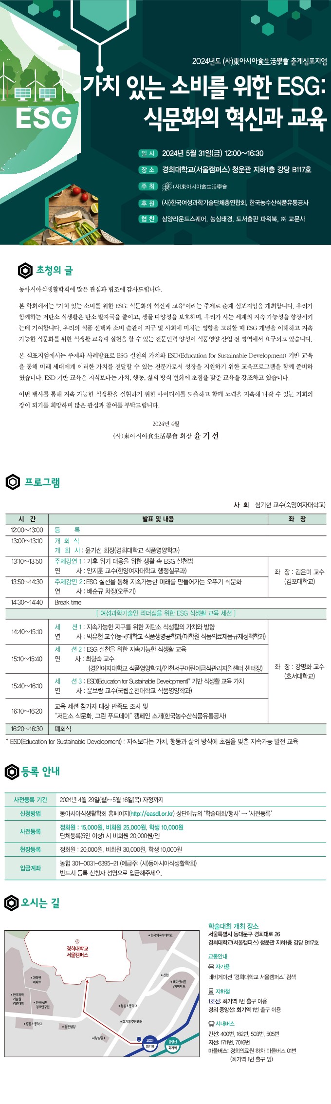 2024년 동아시아식생활학회 춘계심포지엄 사전등록 안내