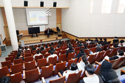 이 날 행사에는 강원외국어고등학교 시청각실에 모인 약 100명의 학생들과 주원섭 강원외국어고등학교 교장 선생님을 비롯해 교감 선생님과 여러 선생님들도 참석했다.