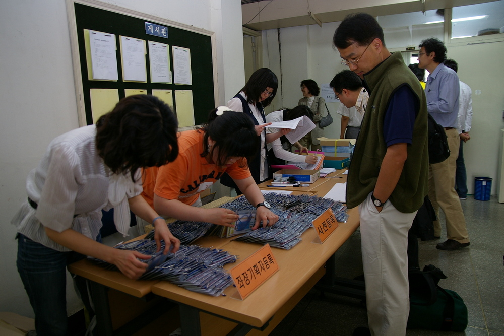 22일 접수데스크 앞에서