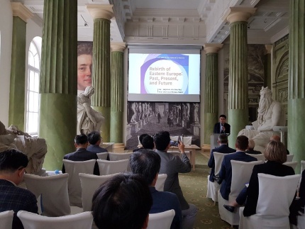 러시아연구소 소속 황성우 교수는  2018년  7월  4()~5(이틀에 걸쳐 폴란드 바르샤바 국립대학교에서 개최된 국제학술회의에서 개회식 사회와 함께 논문을 발표했다 바르샤바 대학교 역사연구소 아시아중동부유럽학회 한국외국어대 동유럽발칸연구소가 공동으로 개최한 이번 국제학술회의는  1918년 독립국가로 재탄생한 동유럽 제 국가를  100년이 지난 시점에서 다시 조명해보자는 취지로 기획됐다 학술회의 주제는  동유럽의 재탄생 과거 현재 그리고 미래 ’(Rebirth of Eastern Europe: Past, Present, and Future)였다 이번 국제학술회의에는 욜란타 호인스카 -미카 바르샤바대학교 부총장 바르토쉬 콘트이니 바르샤뱌 대학교 부학장 루카쉬 니에시와프스키 -스파노 역사연구소 소장 등 폴란드 측 인사들과 오성환 주 폴란드 공사 김용덕 아시아중동부유럽학회장 김정환 한국외국어대 동유럽대학장 등을 포함해 기조연설 포함 총  7개 세션에서  5개국  27명의 학자들이 발표했다 .