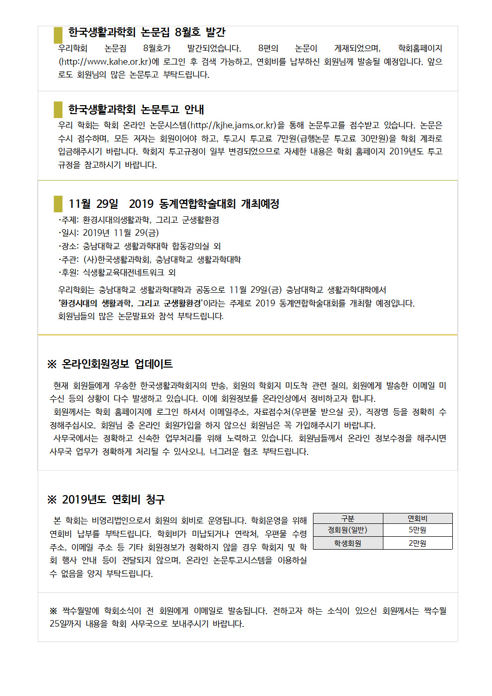 [한국생활과학회] 학회소식 7-8월