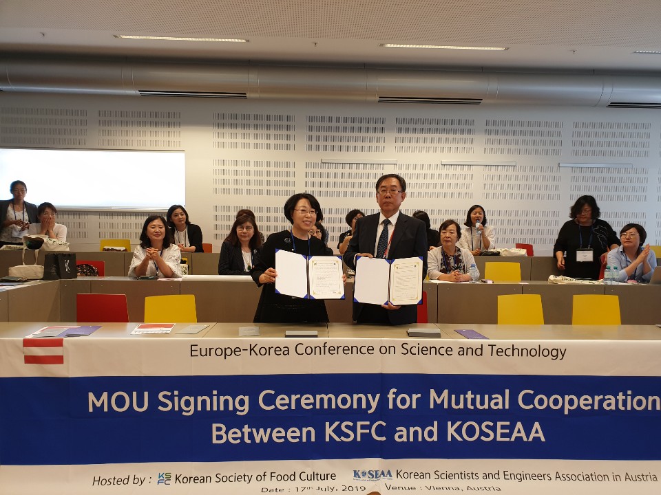 최윤정 학회장님께서 EKC2019 여성과총 세션에 참석하여 학회소개 및 재오스트리아한인과학기술자협회와 MOU를 체결하셨습니다.
