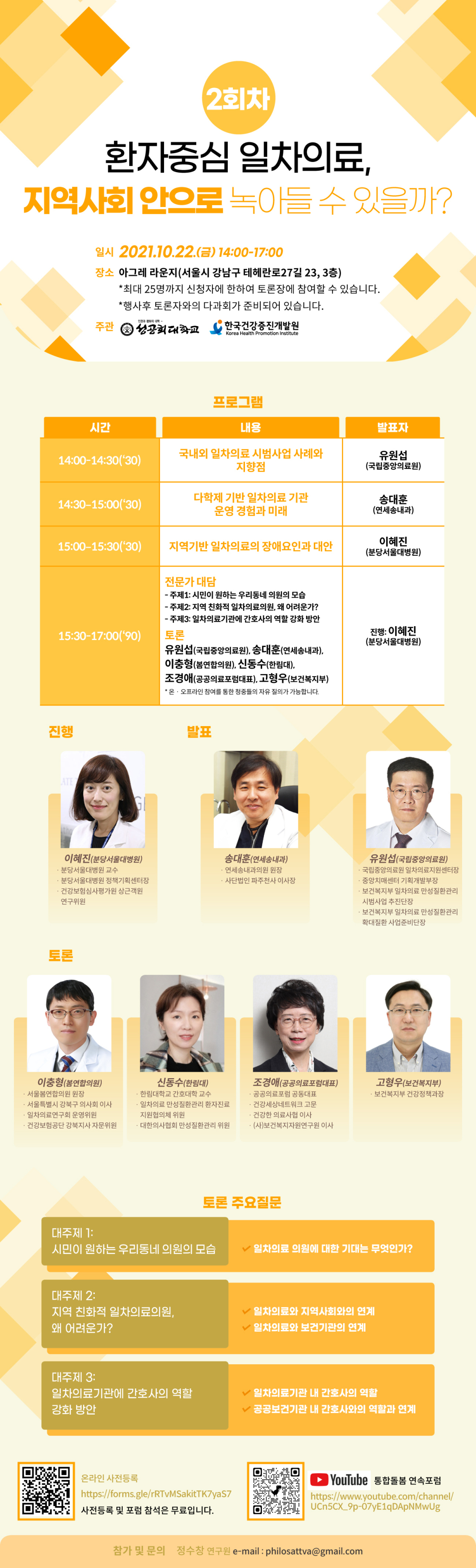 [지역사회 통합돌봄, 다시 말하다] 연속 포럼 2회차 개최 안내