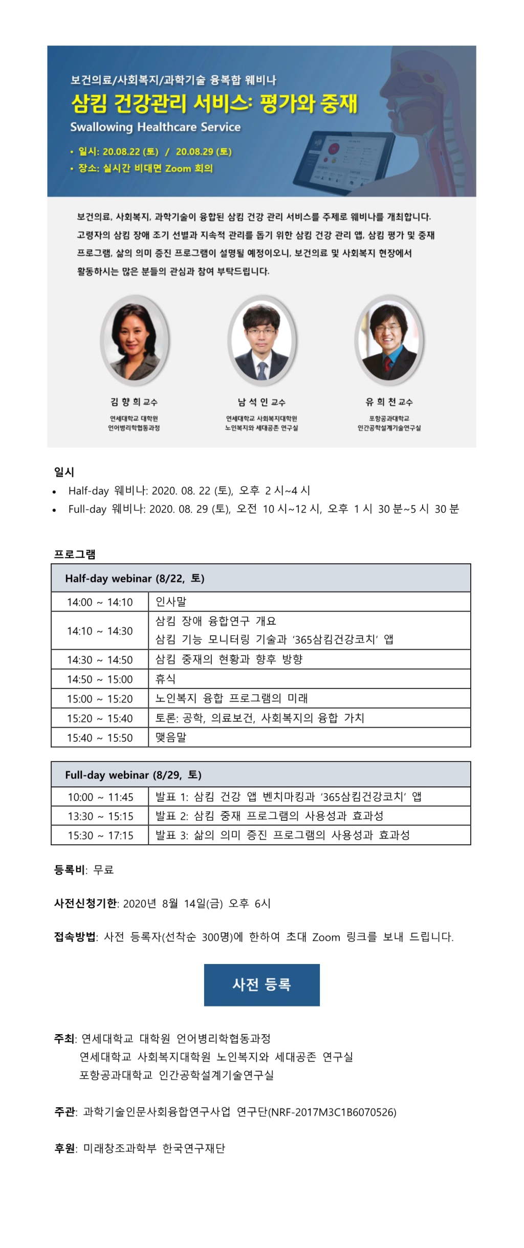 '삼킴 건강관리 서비스: 평가와 중재' 융복합 웨비나 개최안내