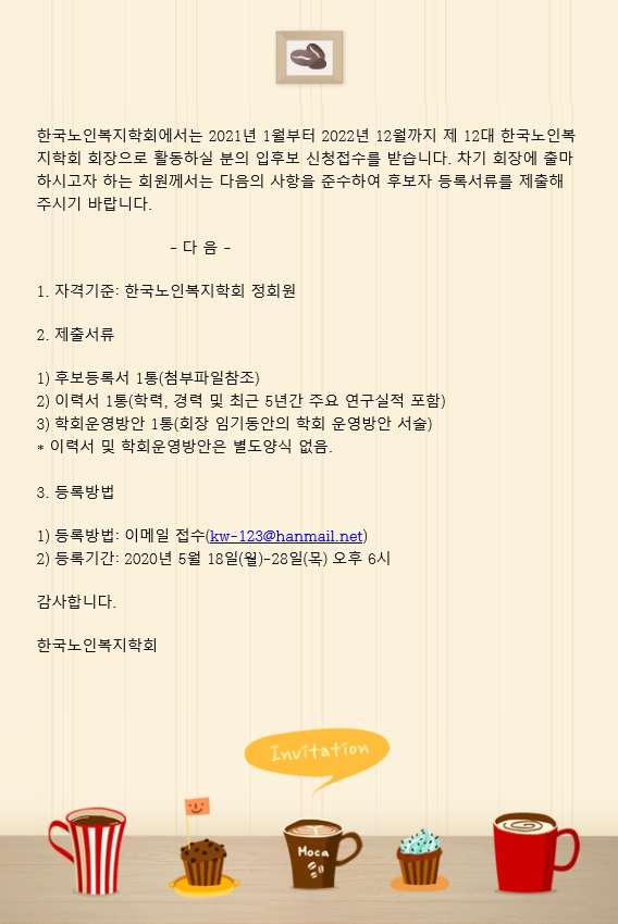 한국노인복지학회장 선출을 위한 후보등록 공고
