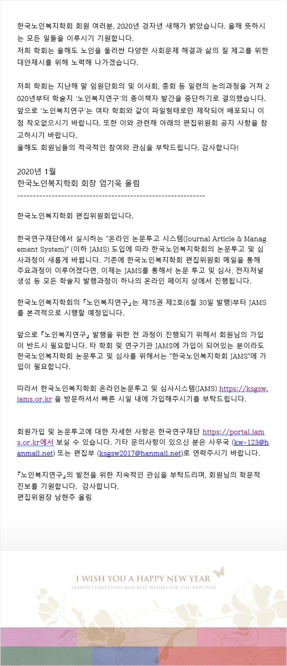 한국노인복지학회 학술지 노인복지연구 관련 중요 안내