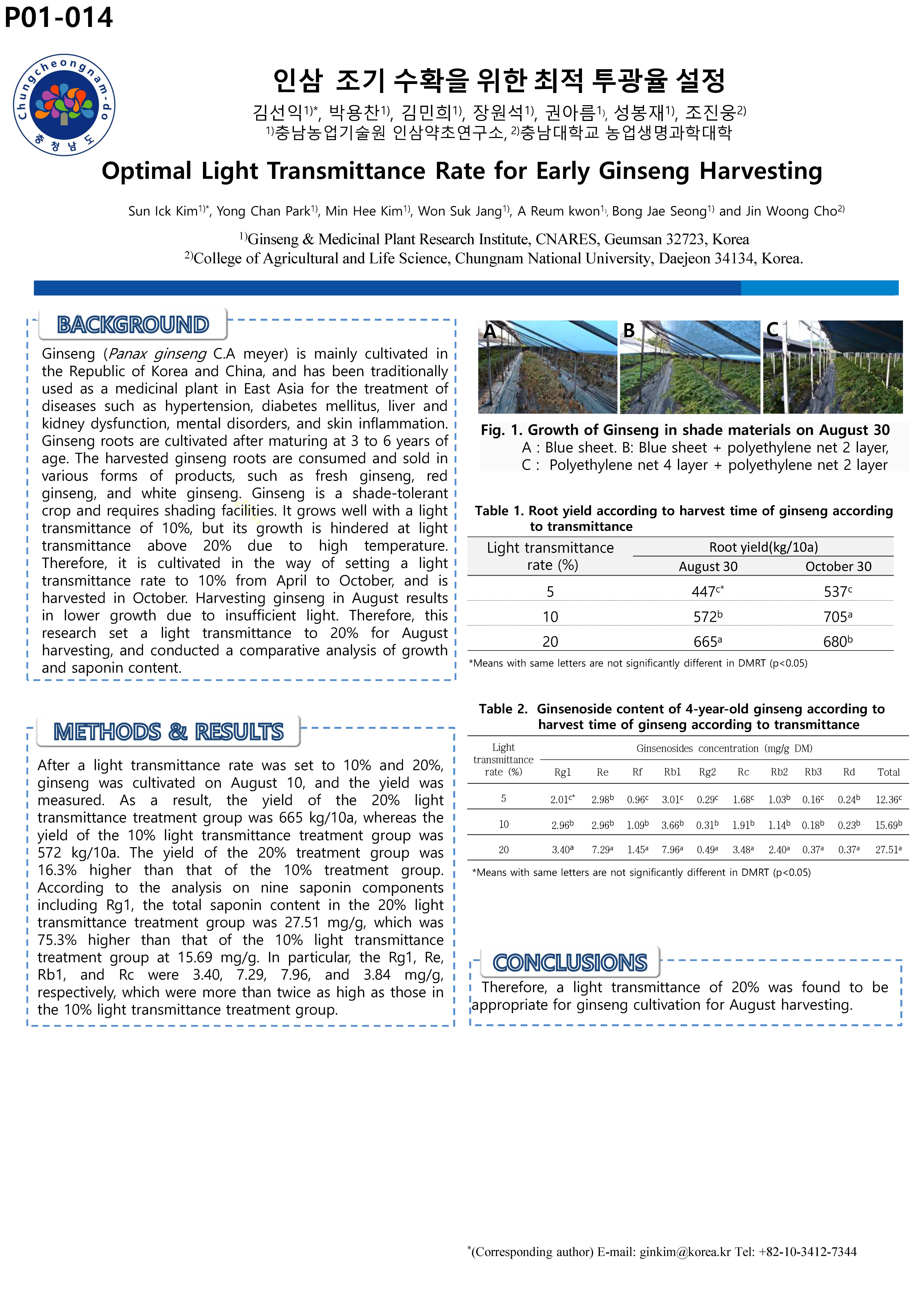 [P01-014] 인삼 조기 수확을 위한 최적 투광율 설정