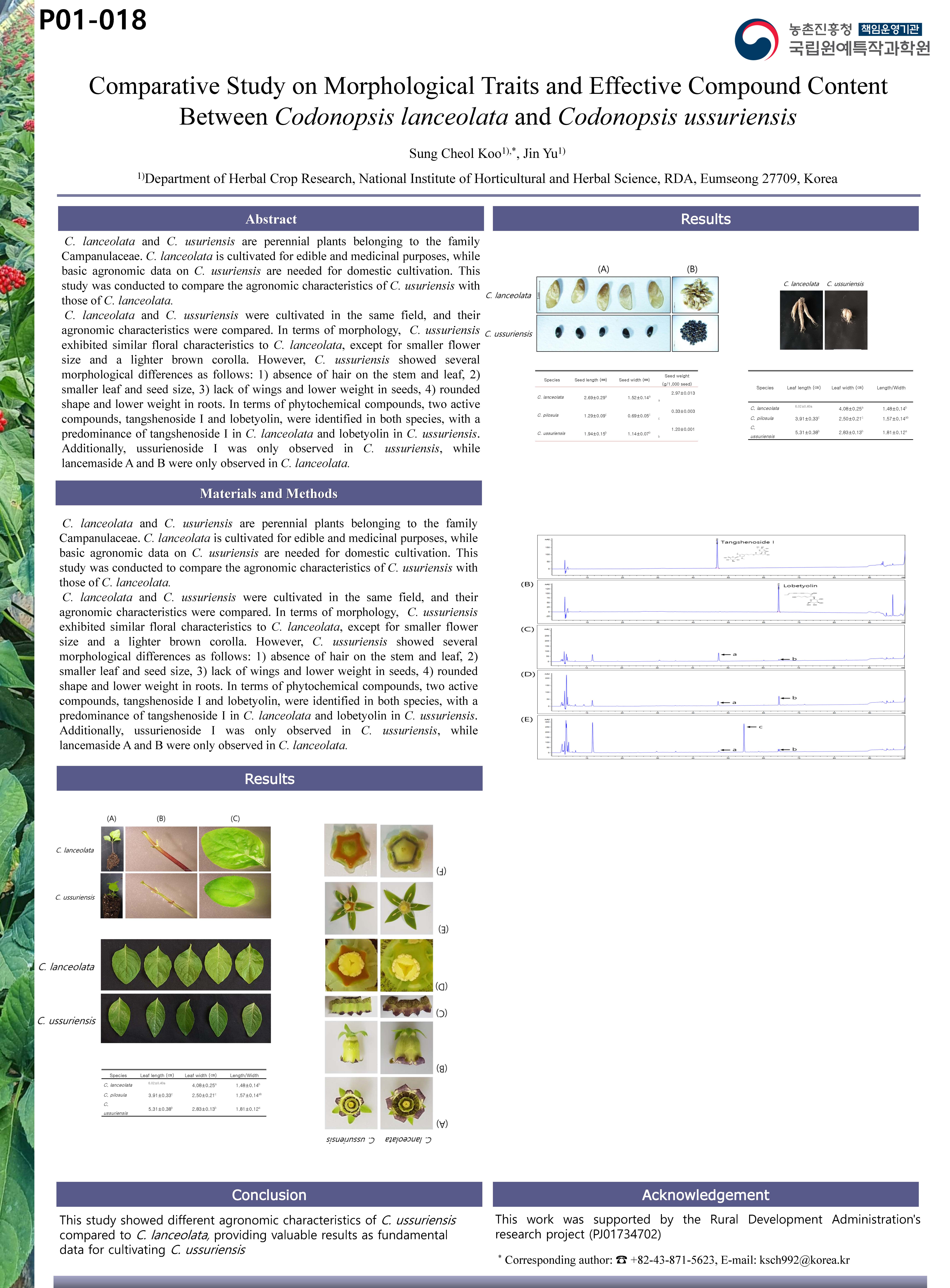 [P01-018] 더덕과 소경불알의 형태학적 특성과 유효성분 함량 비교 연구
