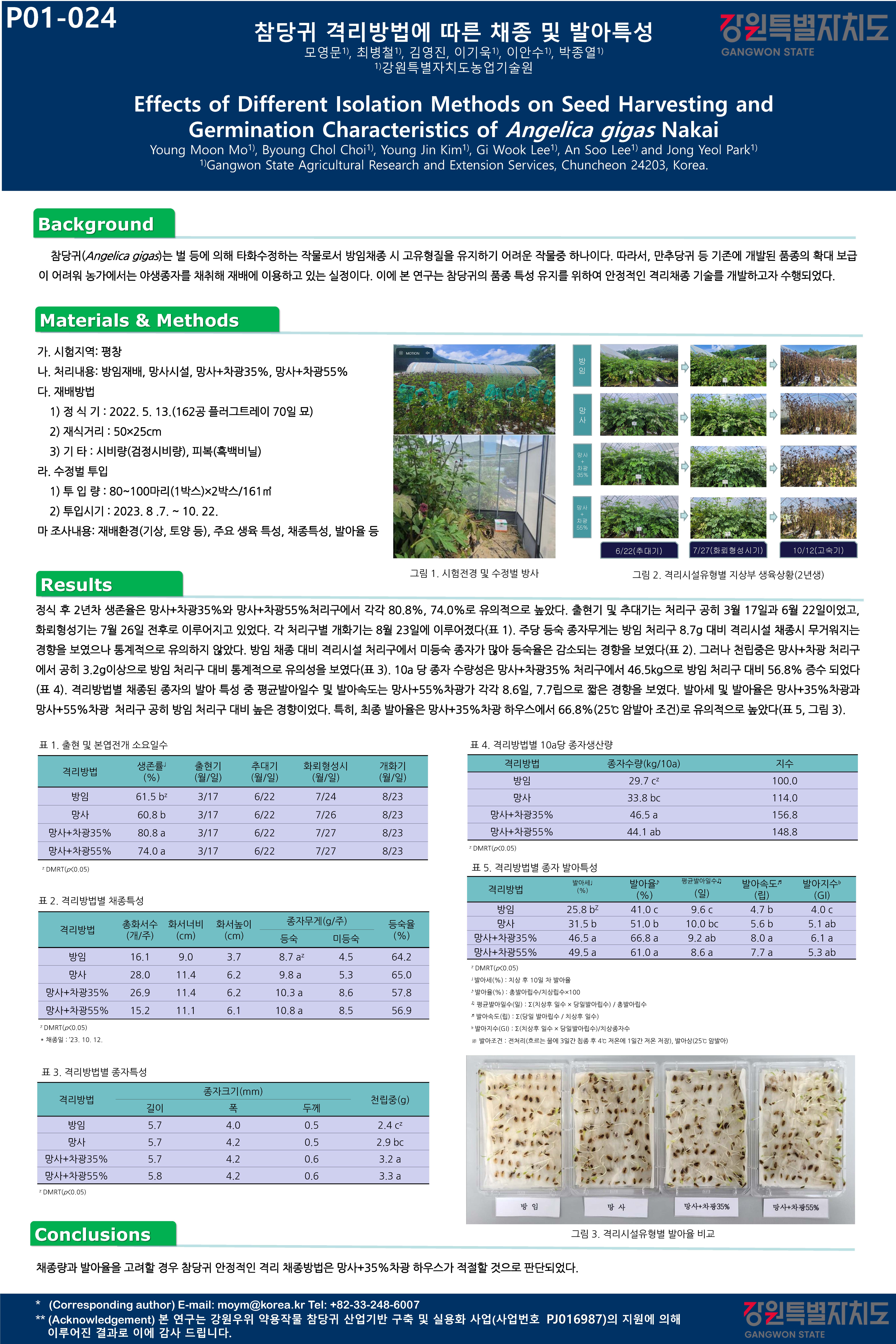 [P01-024] 참당귀 격리방법에 따른 채종 및 발아특성