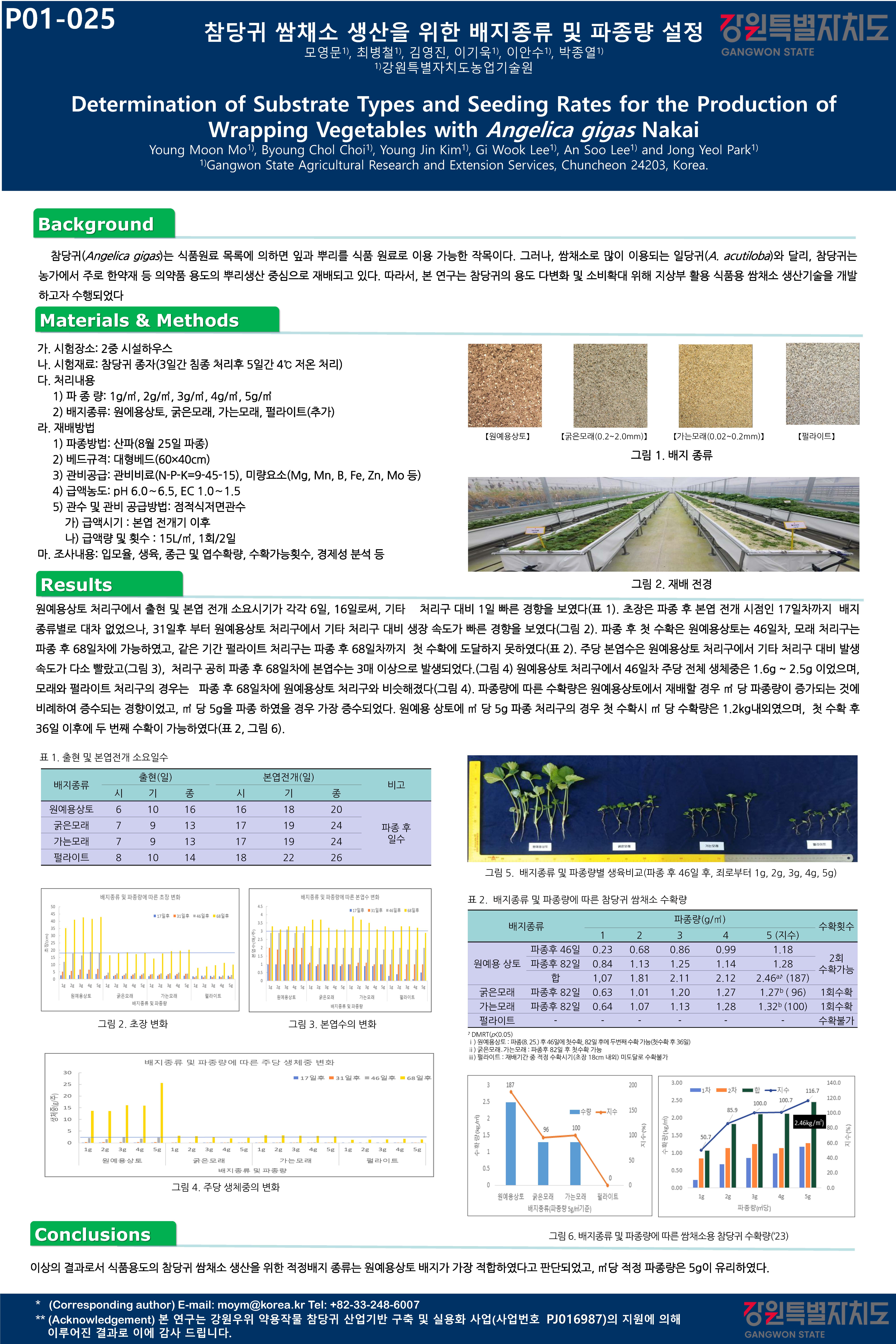 [P01-025] 참당귀 쌈채소 생산을 위한 배지 종류 및 파종량 설정