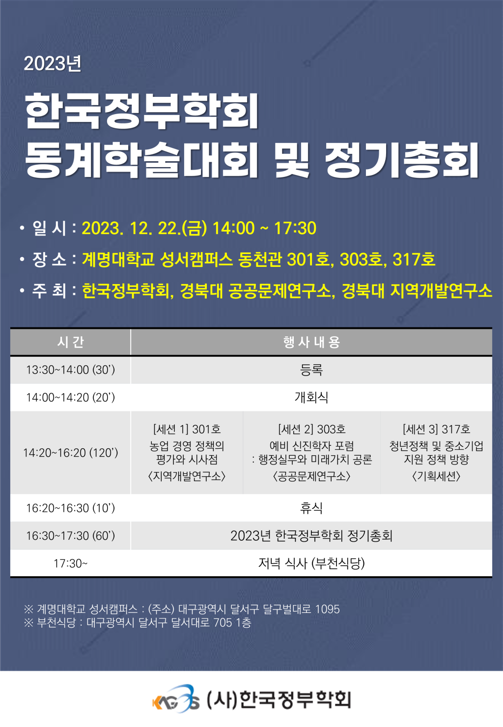 [2023년 학술대회 및 정기총회] 2023년 12월 22일 한국정부학회 동계학술대회 및 정기총회 안내 <수정>