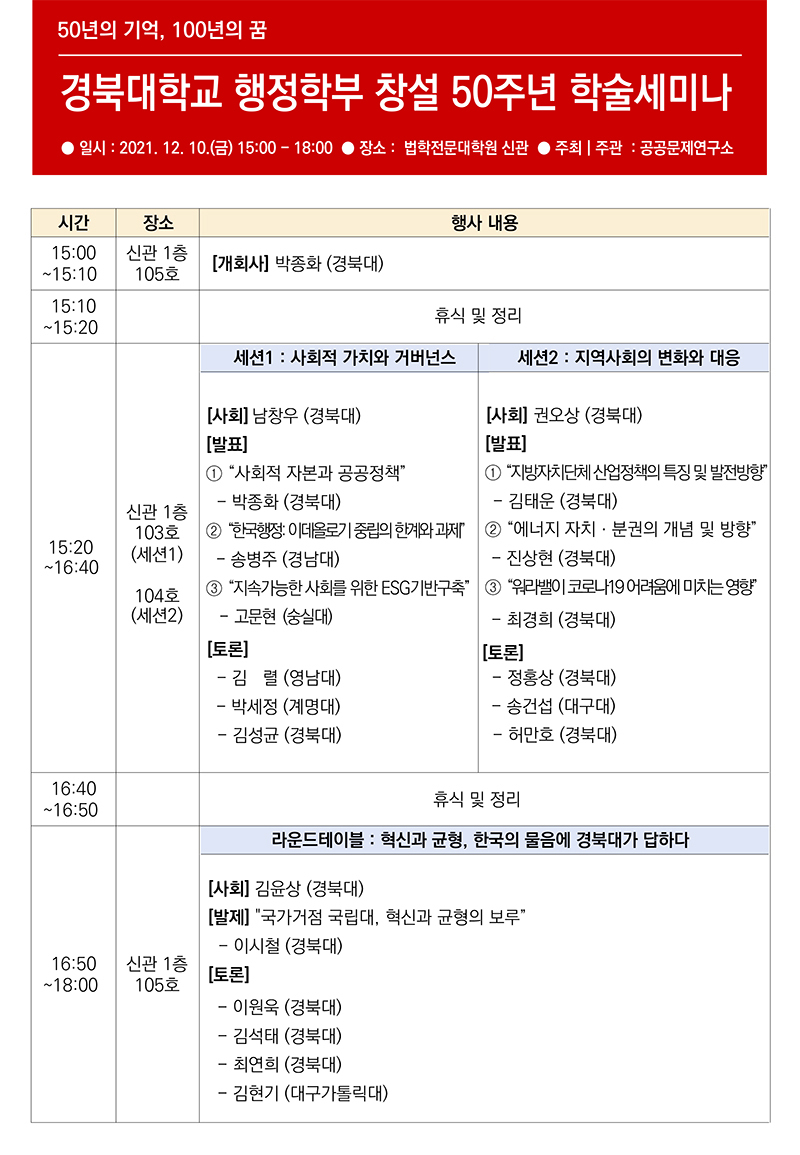 경북대학교 행정학부 50주년 세미나