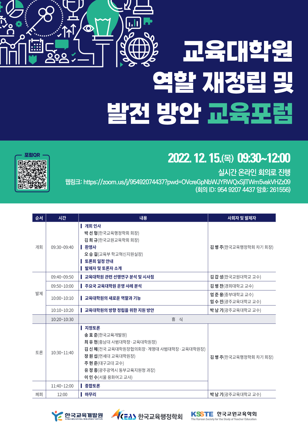 [포럼공동개최] 교육대학원 역할 재정립 및 발전 방안 교육 포럼 개최(12월 15일 목) 안내