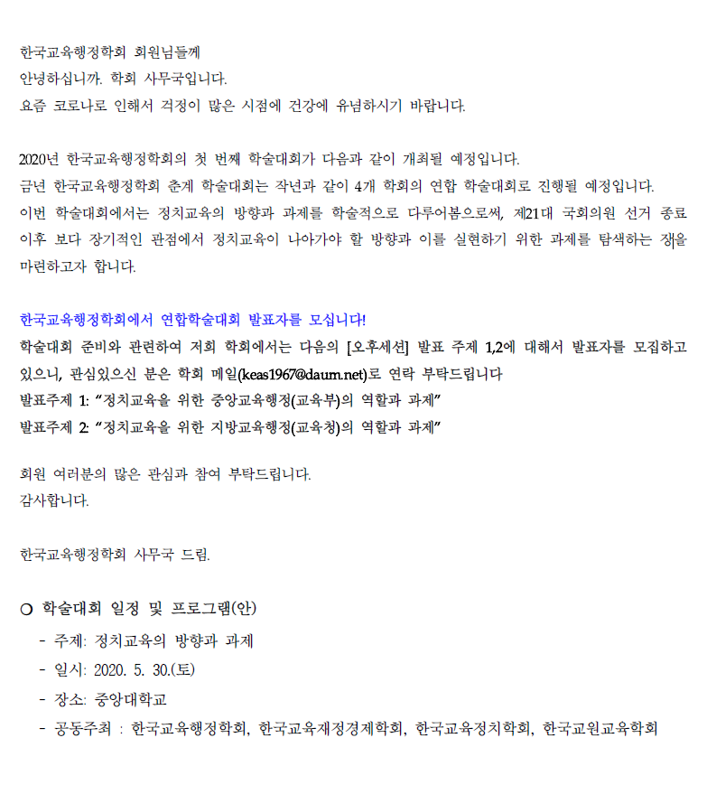 [한국교육행정학회] 춘계학술대회 안내 및 발표자 모집(5월 30일/ 중앙대학교)