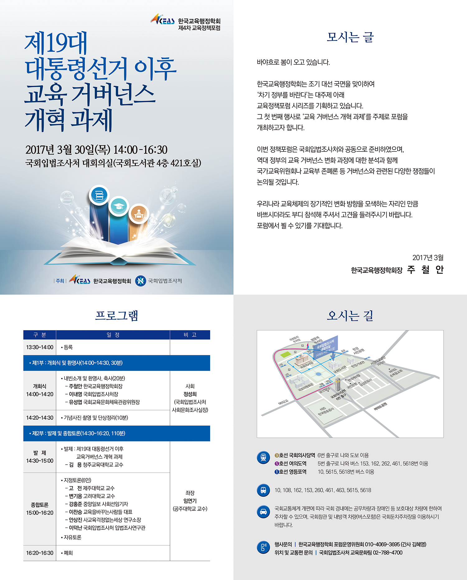 □ 주제 : “제19대 대통령선거 이후 교육 거버넌스 개혁 과제”