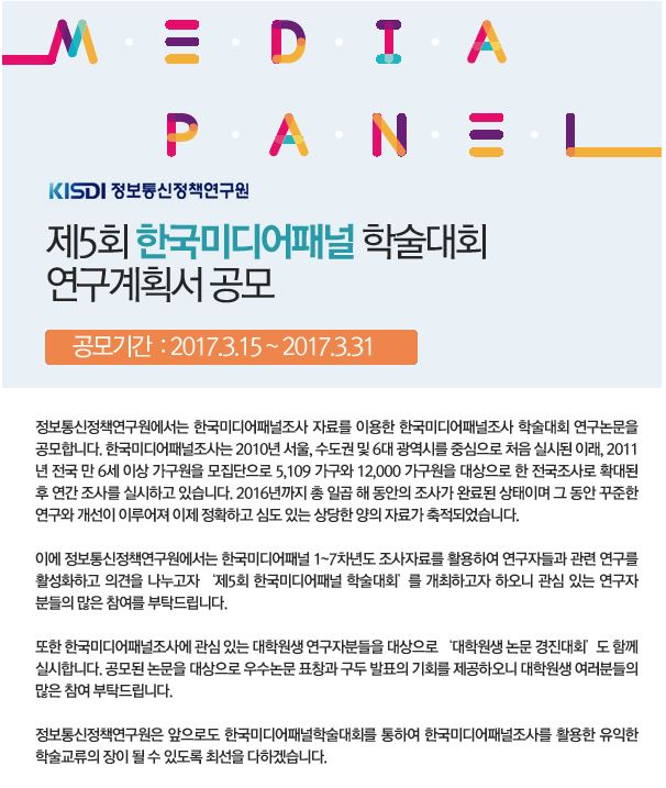 [KISDI] 제5회 한국미디어패널 학술대회 연구계획서 공모