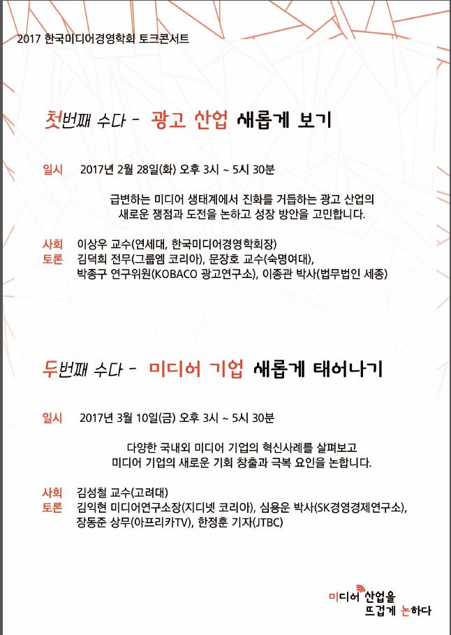 [한국미디어경영학회] 2017 미디어경영 토크콘서트 <미디어산업을뜨겁게논하다>
