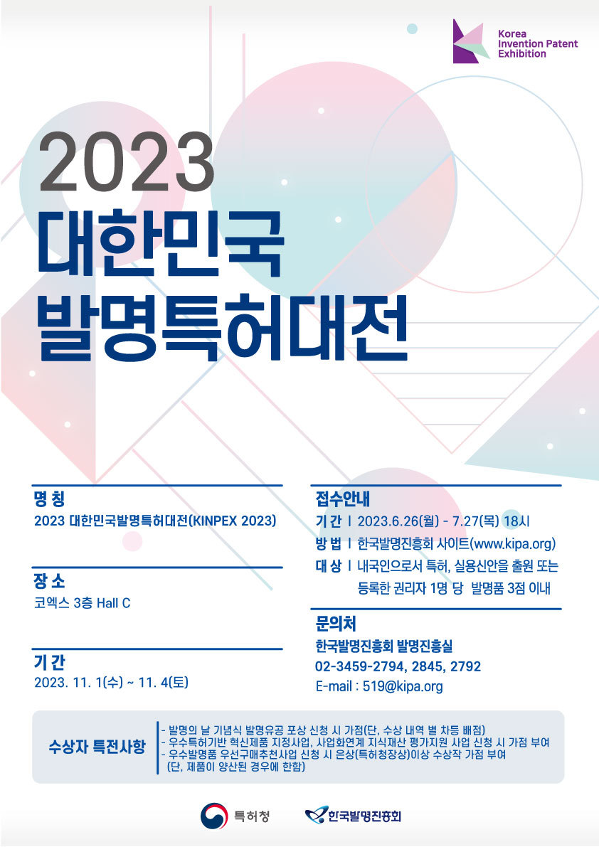 [특허청/한국발명진흥회] 2023년 대한민국발명특허대전 출품 신청 접수중(~7.27)