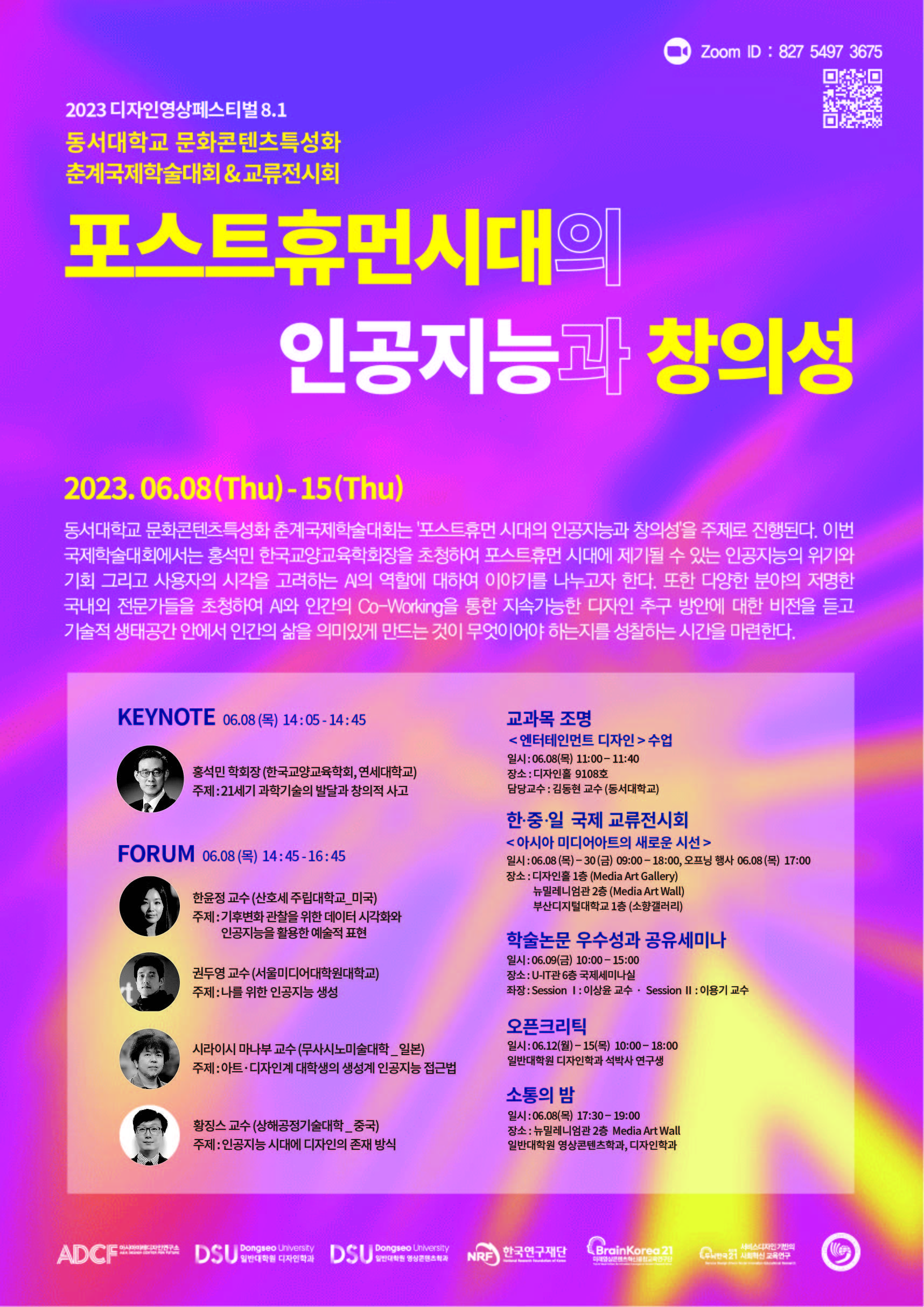 2023년 동서대 춘계학술대회에서 동서대학교 아시아미래디자인연구소, 일반대학원 디자인학과와 영상콘텐츠학과는 '포스트휴먼 시대의 인공지능과 창의성'을 주제로 포스트휴먼 시대에 인간과 인공지능의 상호작용이 맞이할 미래의 비전을 공유하기 위하여 다양한 분야의 연구자들을 초청했습니다.
