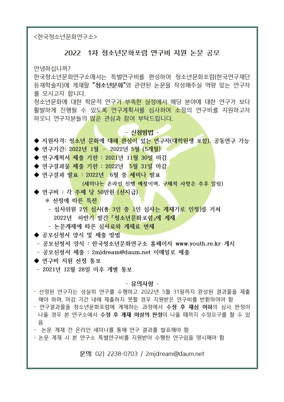 2022 제1차 연구비 지원 논문공모 안내