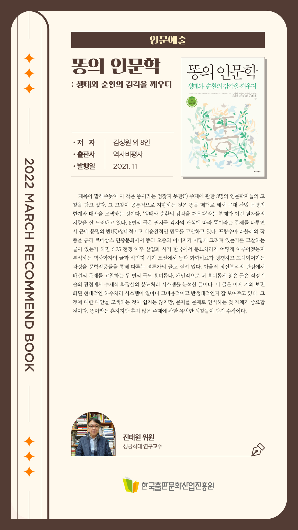 책나눔위원회는 각계 전문가들로 구성돼 있다. 출판수요 확대 및 독서문화 확산을 위해 ▲문학 ▲인문예술 ▲사회과학 ▲자연과학 ▲실용일반 ▲그림책·동화 ▲청소년 등 7개 분야의 도서를 매달 추천사와 함께 소개한다.