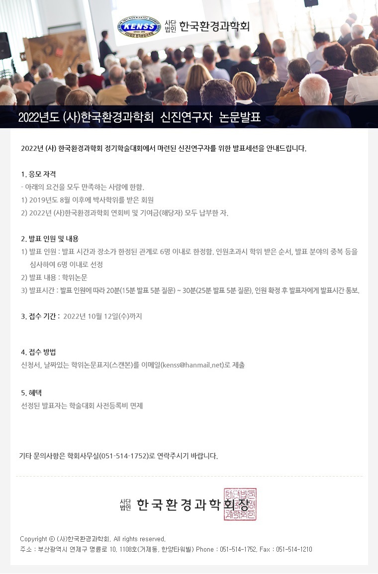 (사)한국환경과학회 30주년기념 정기학술대회 신진연구자 논문발표 안내