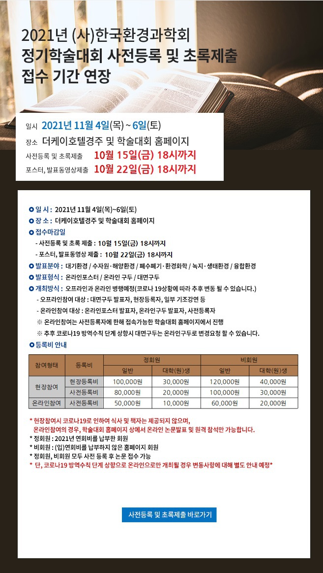 [10.15(금)18시까지 접수연장최종] 2021년 정기학술대회 사전등록 및 초록제출