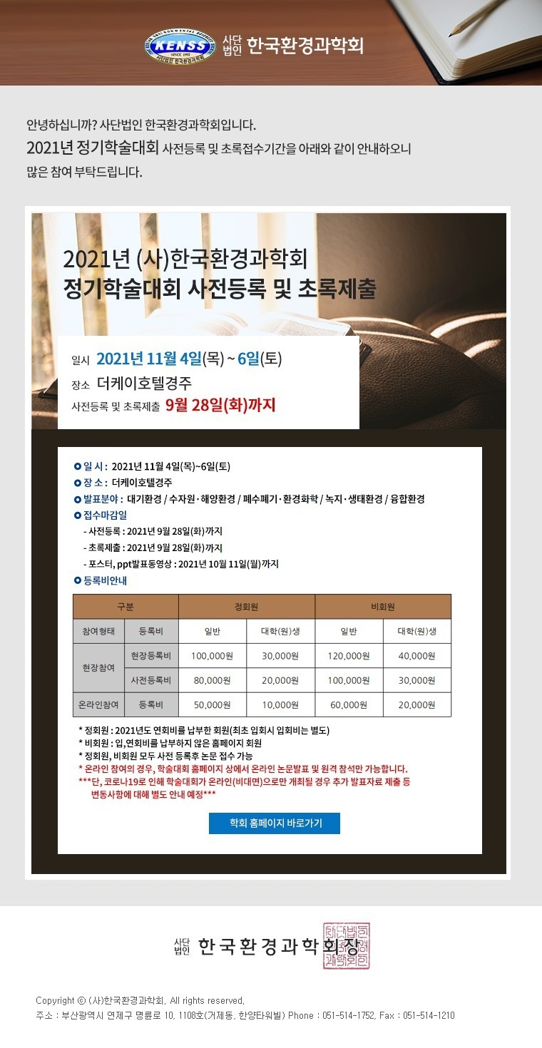 2021년 (사)한국환경과학회 정기학술대회 개최공문