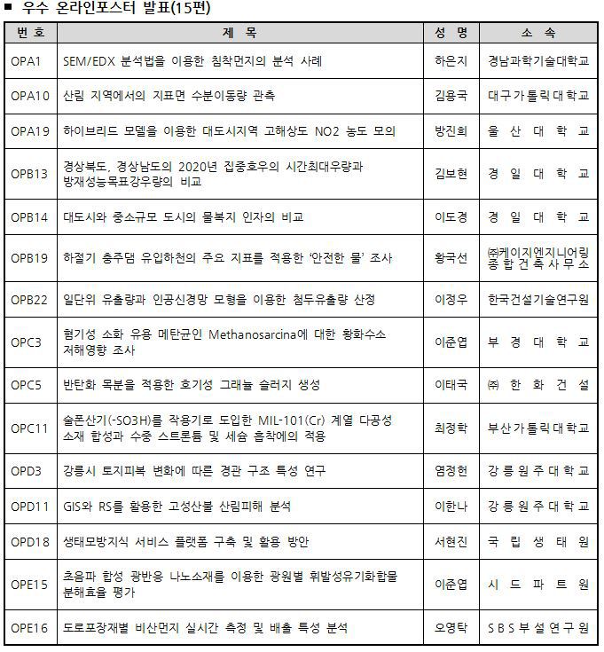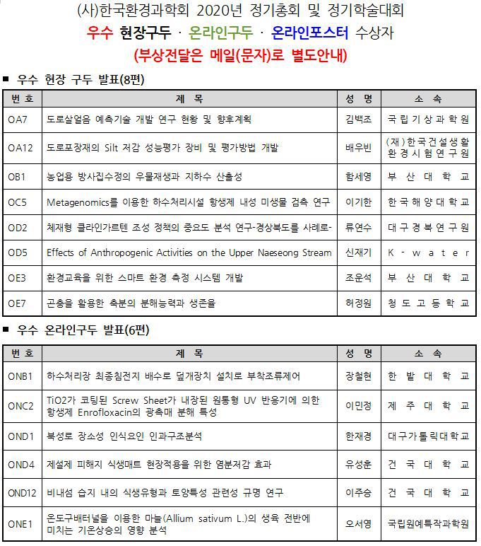 2020년 정기학술대회 우수구두,포스터 수상자 안내