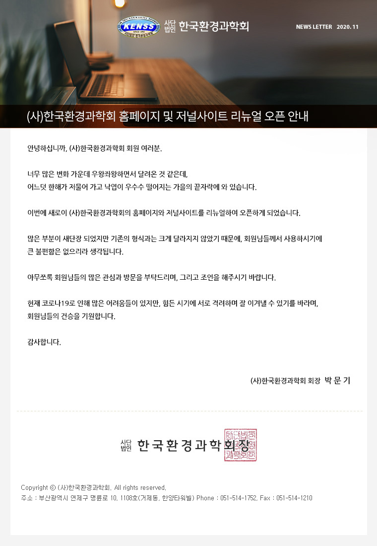 (사)한국환경과학회 홈페이지 및 저널사이트 리뉴얼 오픈 안내