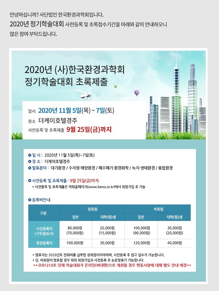 2020년 정기학술대회 사전등록 및 초록접수 안내