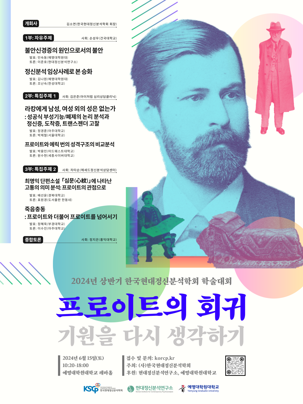사단법인 한국현대정신분석학회에서는 <프로이트의 회귀: 기원을 다시 생각하기>라는 주제로 2024년 상반기 학술대회를 개최합니다.