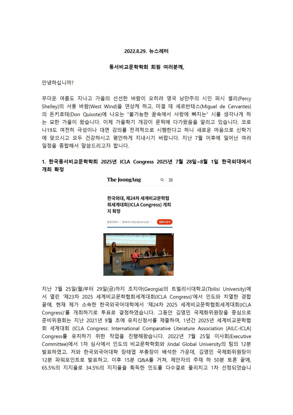 한국동서비교문학학회 뉴스레터 2022. 8. 29